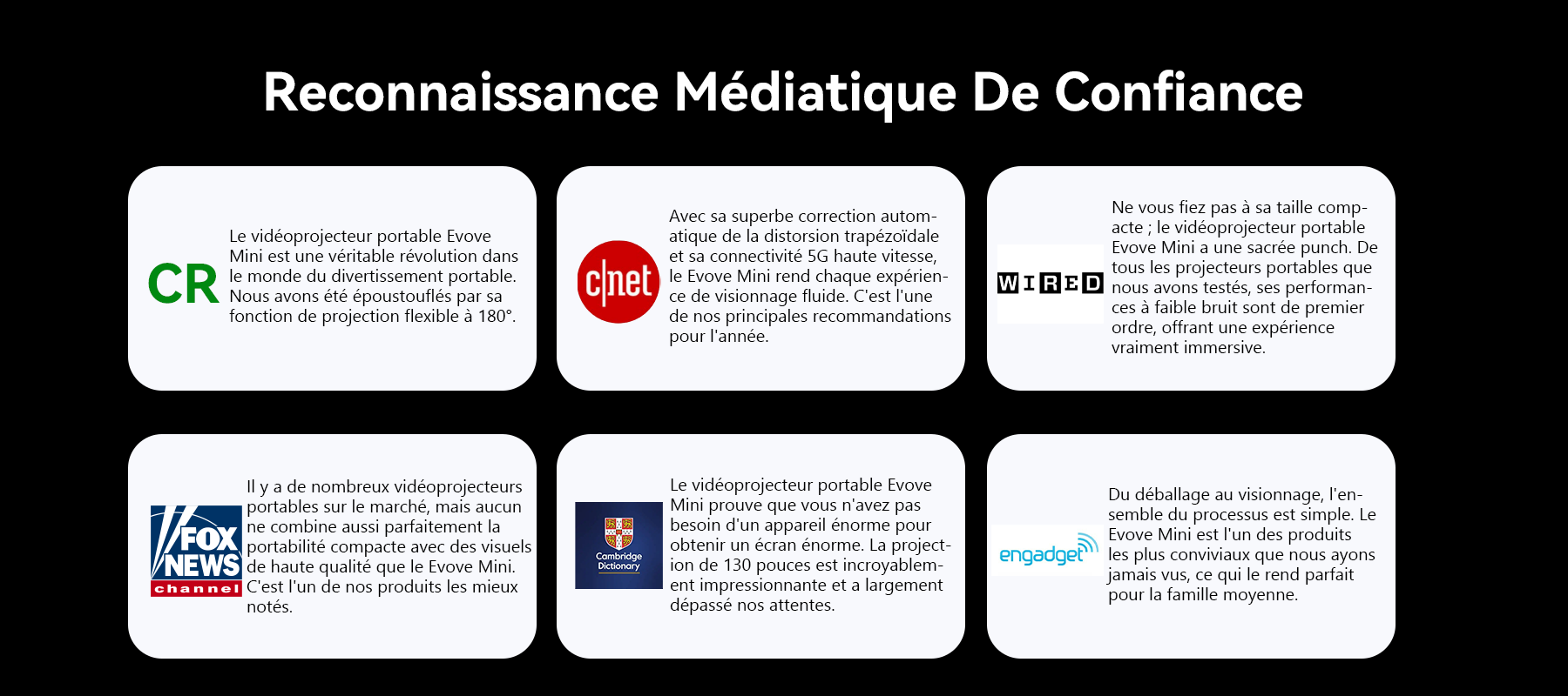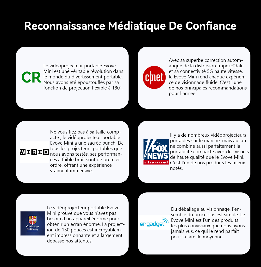 Voici le Projecteur Portable Evove Mini : assez petit pour être tenu d'une seule main, mais capable de projeter un immense écran de 130 pouces. Les soirées cinéma sont désormais simples et sans effort, vous laissant libre de profiter de chaque instant. La promesse d'Evove est simple : offrir la liberté du divertissement et vous aider à créer des souvenirs inoubliables, n'importe quand, n'importe où.